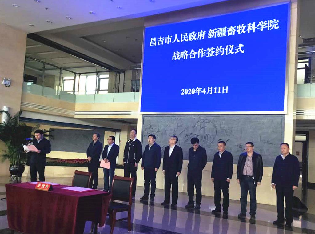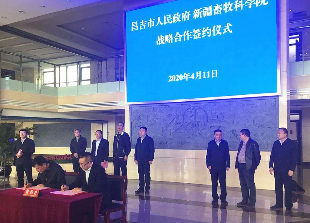 新疆畜牧科学院与昌吉市人民政府战略合作协议签订仪式于4月11日上午在昌吉市人民政府举行。自治区畜牧兽医局党组成员,院党委书记、副院长冯东河与昌吉市委副书记、市长马红军签订了战略合作协议。院党委委员、副院长韩雪松,院科技管理与国际合作处、畜牧经济与信息研究所、奶业研究所负责人出席签约仪式,昌吉市领导姚进、王海峰等参加签约仪式。