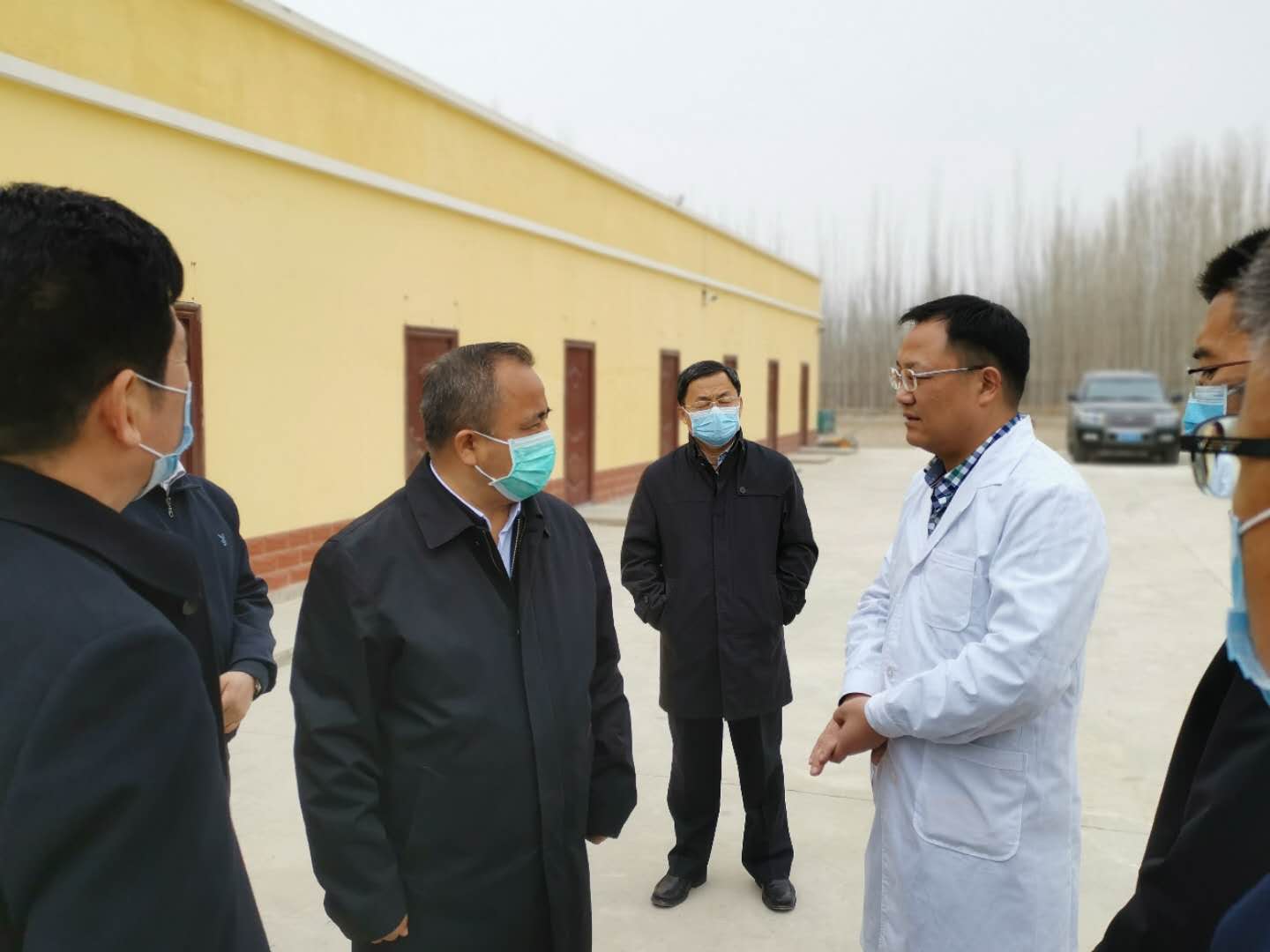 2020年3月12日,自治区党委常委、人民政府副主席、自治区党委教育工委副书记艾尔肯·吐尼亚孜一行领导来墨玉县多胎肉羊和肉鸽科技示范基地调研指导工作。