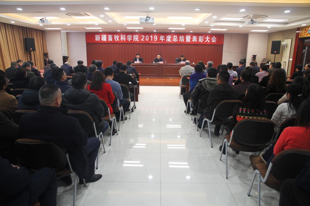 1月20日下午,新疆畜牧科学院召开2019年度工作总结暨表彰大会。会议以习近平新时代中国特色社会主义思想为指导,深入贯彻落实党的十九大和十九届二中、三中、四中全会精神,贯彻落实中央经济工作会议、农村工作会议和自治区党委经济工作会议精神,总结2019年工作,研究部署2020年重点任务。自治区畜牧兽医局党组成员,院党委书记、副院长冯东河作工作报告。会议由院党委委员、副院长曹宏斌主持,院领导班子成员、老干部代表、机关各处室及研究所全体干部职工共200余人参加会议。