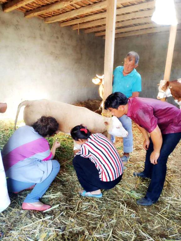 帮助治疗病畜。兽医所结亲干部走访至依马木•塔吉家中时,发现亲戚家中的小牛犊因生产过程中,未处理好脐带而导致脐带发炎,依马木•塔吉虽已进行敷药但也未见明显好转。结亲干部布海里且木了解情况后,立即到牛棚中仔细观察了小牛犊的症状,结合多年临床经验诊断需要打针和外敷结合治疗,为小牛犊开来了药并进行注射和外敷治疗。经过处理,小牛犊现已明显好转。
