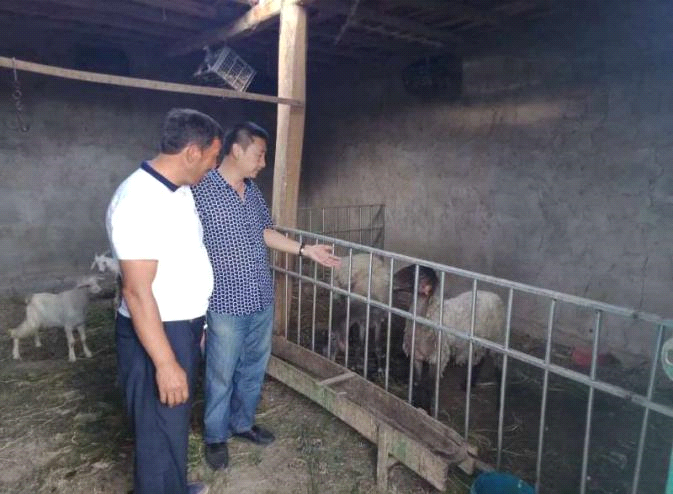结亲干部在示范户的良法饲喂、良料制作、卫生防疫等技术做现场指导