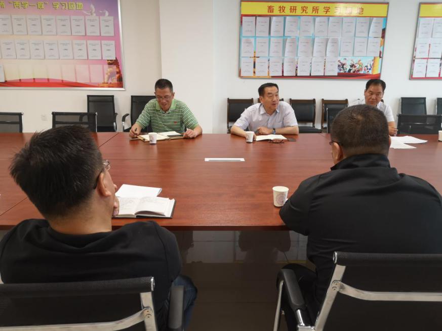 6月20日上午,自治区畜牧兽医局党组成员,院党委书记、副院长冯东河到畜牧研究所开展“不忘初心、牢记使命”主题教育调研座谈,征求意见建议,扎实推进开展主题教育活动,院组织人事处、科管处负责人陪同调研。