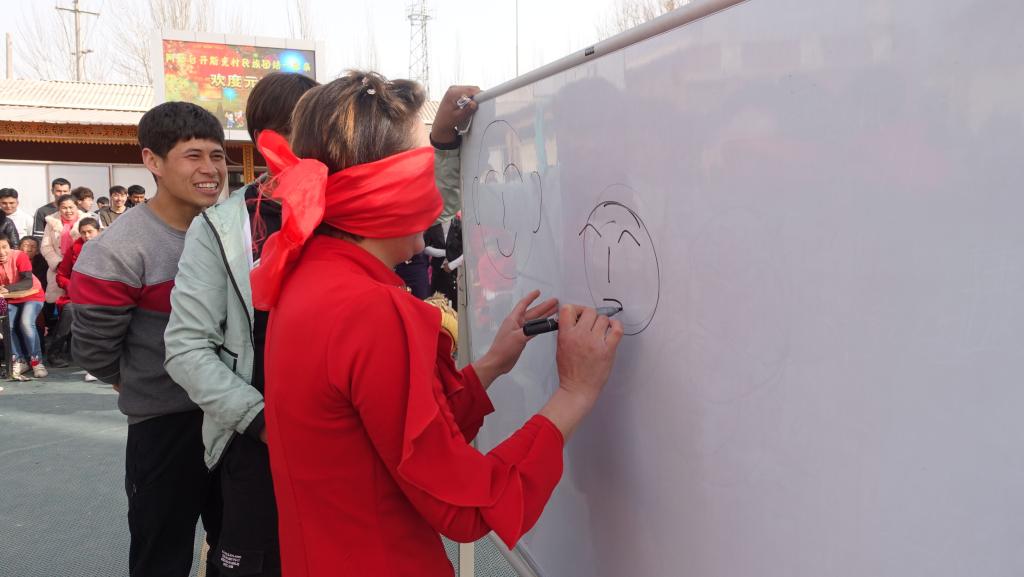 联欢会在驻村队员合唱《没有共产党就没有新中国》的激扬歌声中拉开帷幕,结亲干部董红演唱了黄梅戏“天仙配”,为村民展示了中国戏曲黄梅戏经典剧目的传统文化魅力,村民们表演了唐诗《悯农》和《登鹳雀楼》的朗诵,为大家展示了一年来国语学习的成效,年轻的村民表演了舞蹈《好日子》,大学生表演了现代劲舞,为现场观众送去了欢乐和节日的祝福,结亲干部和结亲户现场编组开展了蒙眼敲锣、蒙眼画图的游戏,现场一片欢声笑语,大家脸上洋溢着欢乐和幸福。12村联谊活动在欢乐的麦西来甫乐曲中落下了帷幕。