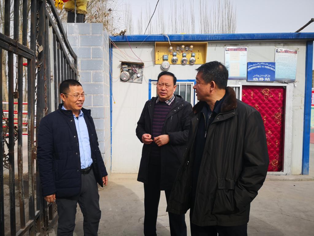 2019年2月3日农历大年二十九,自治区畜牧兽医局党组成员,新疆畜牧科学院党委书记、副院长冯东河一行来到巴楚县色力布亚镇拜什吐普村,与工作队员以及全村的父老乡亲一起欢度春节。当天晚上,自治区农业农村厅哈尔肯·哈布德克里木厅长风尘仆仆赶到色力布亚镇看望慰问驻村工作队,感谢队员在聚焦总目标、做好脱贫攻坚、做好访惠聚工作方面做出的努力,并要求大家认真落实自治区党委的要求,做好各方面工作。