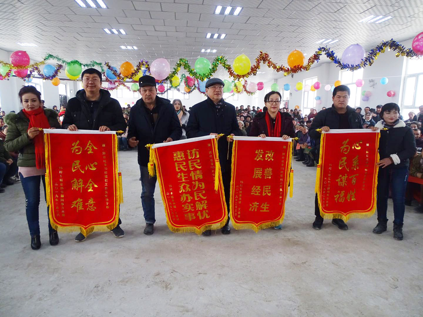 2月4日早晨11点,拜什吐普村新落成的700余平米的农民活动中心张灯结彩、人声鼎沸。全村1000多位在家的村民和新疆畜科院来村参加结亲的20位同志、12村工作队的代表、15村工作队员一起举办民族团结一家亲的联谊活动。返乡学生、村文化队、村民代表用欢乐的歌舞、诗朗诵等表达了对党的感激之情和对新疆畜科院亲人的感激之情。村民代表向新疆畜科院、“访惠聚”工作队、村两委赠送了锦旗。新疆畜牧兽医局党组成员、畜科院党委书记冯东河致辞,一是祝贺15村在稳定、脱贫攻坚、基础设施建设、产业发展以及集体经济创建、基层组织建设、精神文明建设等方面取得的成绩,二是感谢工作队员在“访惠聚”岗位上的付出和努力,感谢队员舍小家为大家,春节仍然坚守岗位、默默奉献。同时也感谢全村父老乡亲对新疆畜科院工作的关心支持。三是对新一年做好维护稳定和脱贫攻坚工作提出了要求,表达了美好的祝愿。下午,冯东河书记和我院来村结亲的其他19位同志以及12村、15村工作队队员们一起包饺子、吃年夜饭,欢度除夕。