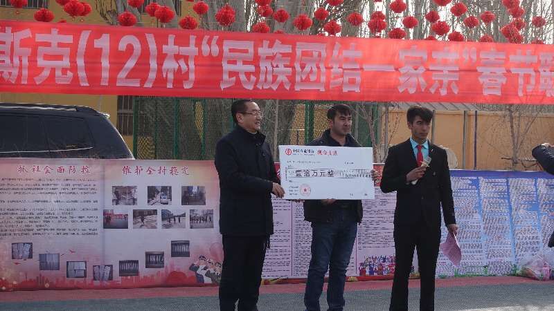 在参加阿勒台开斯克(12)村“‘民族团结一家亲’春节联谊活动”之后,冯东河书记在活动现场亲手将由院代管的该村万只蛋鸡规模化养殖场2019年管理费10万元转交给村两委负责人,为增加村集体收入和持续深化扶贫工作提供了助力。