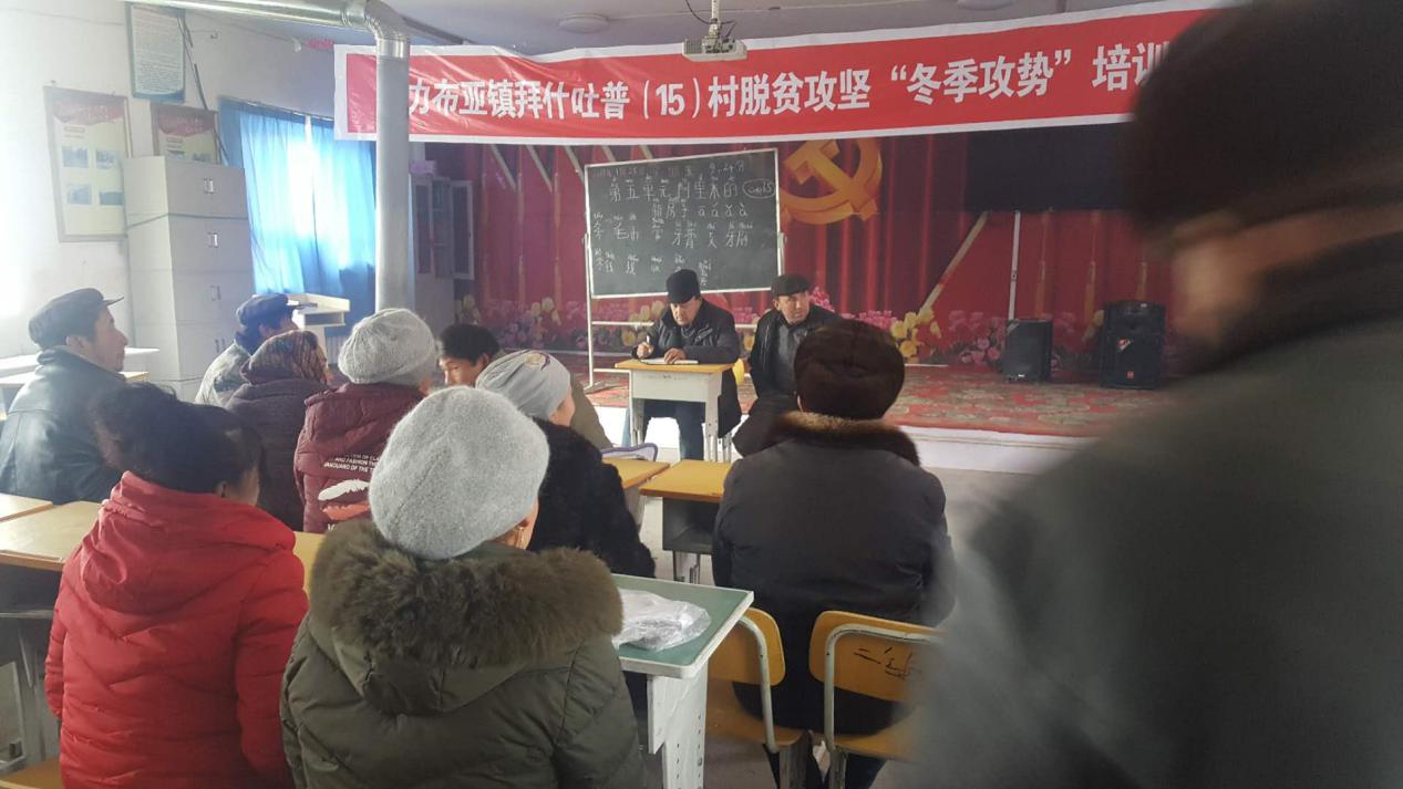 为了做好这次脱贫攻坚冬季攻势的培训工作,工作队分头走家串户详细了解村民的需求。一是针对今年县委提出的“优棉、扩果、兴牧”的要求,邀请做得好有经验的农民为大家作报告,让培训更接地气;二是组织好国语师资力量开展国语培训,队长郑文新等也结合自己学习语言的经历,做专题报告教授学习国语的方法;三是结合内地务工岗前培训等做好人员的动员组织工作;四是针对即将完工的美食街、微创业园等,协调色力布亚镇四村许斌书记和巴楚县职高学校,帮助开展餐饮业务知识培训。