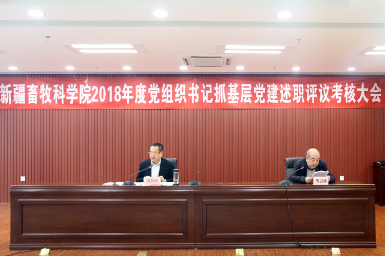 根据自治区党委组织部、区直工委和畜牧兽医局党组的安排部署,1月3日上午,院党委组织召开了2018年度党组织书记抓基层党建述职评议考核大会。会议由自治区畜牧兽医局党组成员,院党委书记、副院长冯东河同志主持。院党委班子成员、各单位党政负责人以及全院党员共计117人参加了会议。
