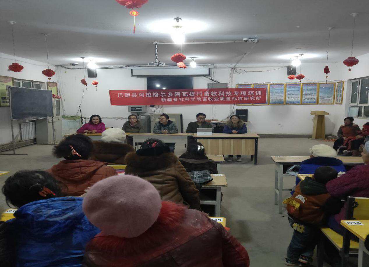 为做好《2018年边远贫困地区边疆民族地区和革命老区人才支持计划科技人员专项计划》培训工作,近日,我院畜牧业质量标准研究所王乐研究员、宫平副研究员等4名技术骨干组成讲师团,前往喀什地区巴楚县阿拉格尔乡阿瓦提村开展畜牧科技培训,全村50余人参加了培训。