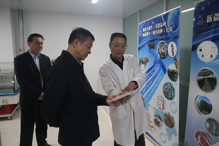 考核结束后,卢蜀江书记等一行还参观了我院畜牧研究所、生物技术研究所、畜牧业质量标准研究所和草业研究所的实验室,详细听取了各研究所近年来在学科建设、科研创新、科技服务、人才开发、对外合作、科研平台等方面的情况介绍,对我院近年来通过科技成果转化,加强自身科技平台条件建设,加强人才培养和深化全院科技创新等工作给予了充分肯定。希望畜科院要围绕新疆畜牧产业的良繁体系建设、家畜品种改良为主攻方向,鼓励科技人员加大推广服务工作力度,为新疆畜牧业高质量发展提供科技支撑。