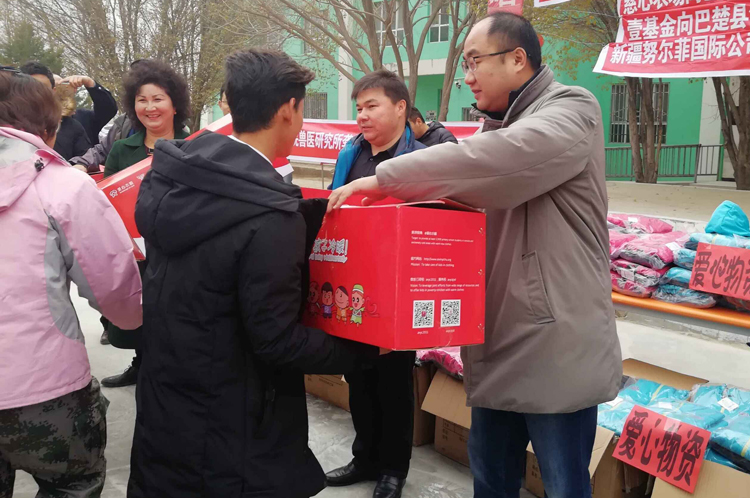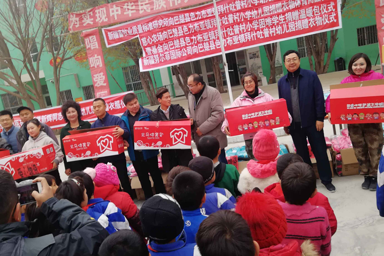11月15日,参加畜牧科学院第六轮第二批“民族团结一家亲”结亲活动的我院畜牧业质量标准研究所,携手慈心农场公益团队在我院“访惠聚”驻村拜什吐普村(15村)小学开展“爱心衣橱心暖新衣”活动,为拜什吐普村小学349名学生每人赠送了一套冲锋衣价值7万元及价值2400元的体育包。