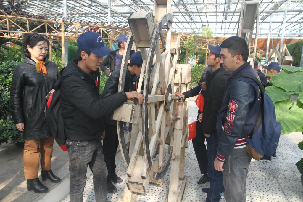 10月24日,迎着清晨第一缕阳光,畜科院结亲干部早早等候在火车站,迎接远道而来的亲戚们。当亲戚们坐上舒适的中巴车后,开启了此行畜科院干部精心安排的参观交流行程。首先前往位于昌吉市的新疆农业博览园,该博览园是国家级科普教育示范基地、国家级农业产业化示范基地。结亲干部们陪同亲戚们参观了热带植物馆、花卉育苗馆、现代农业展示馆等。亲戚们边走边听边看,身临其境的体验了现代农业科技和都市现代农业休闲观光旅游产业的发展,尤其是看到琳琅满目的花卉、硕大奇特的果蔬品种,颇感兴趣,大家边走边聊,不时用手机录像拍照,将眼前的农业科技成果带给家中的亲朋好友分享。参观中,一位做木匠的亲戚在看到农博园中的木制风车后说:“我回去也要在村里的荷花池边修建两个这样的风车!”看着他们时时不忘为家乡做贡献的样子,结亲干部们很是触动。