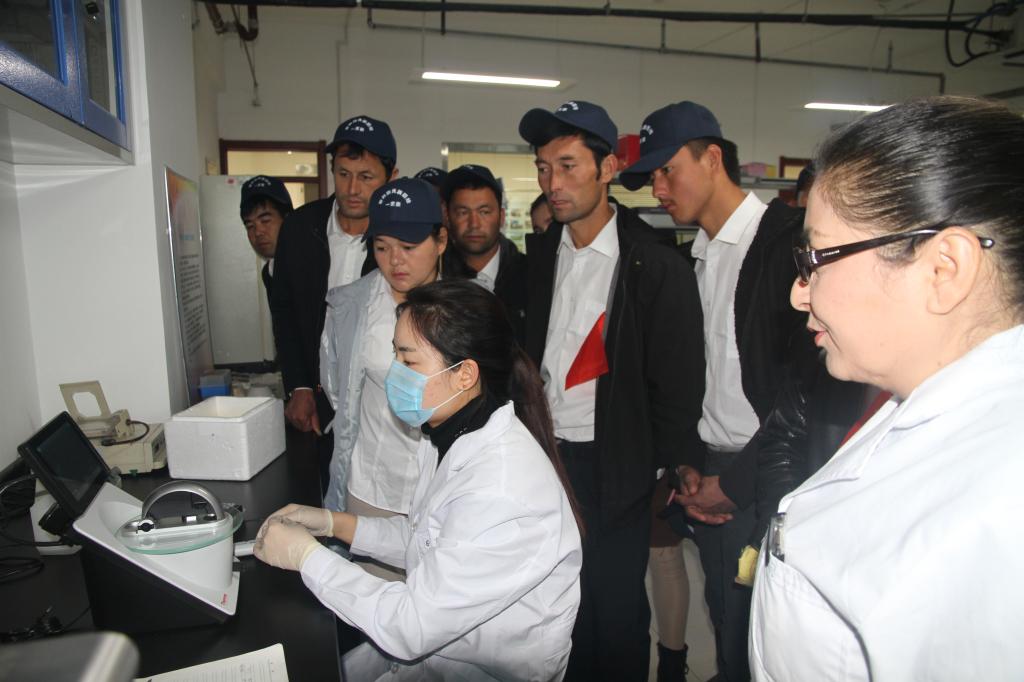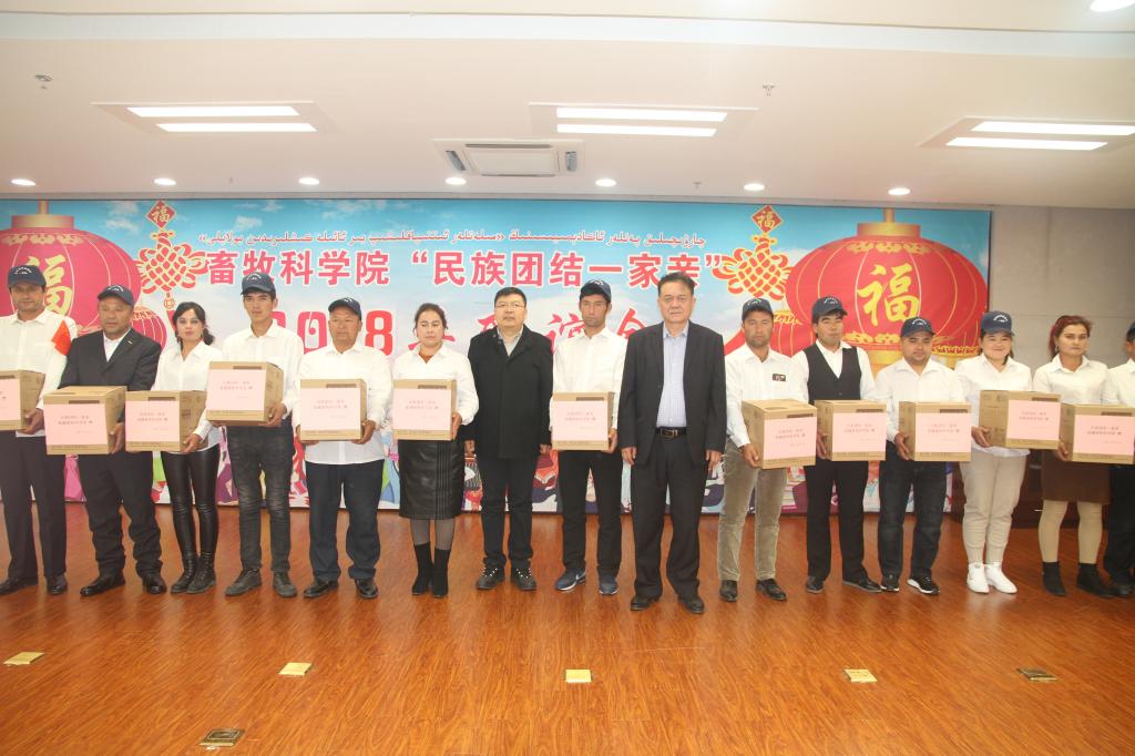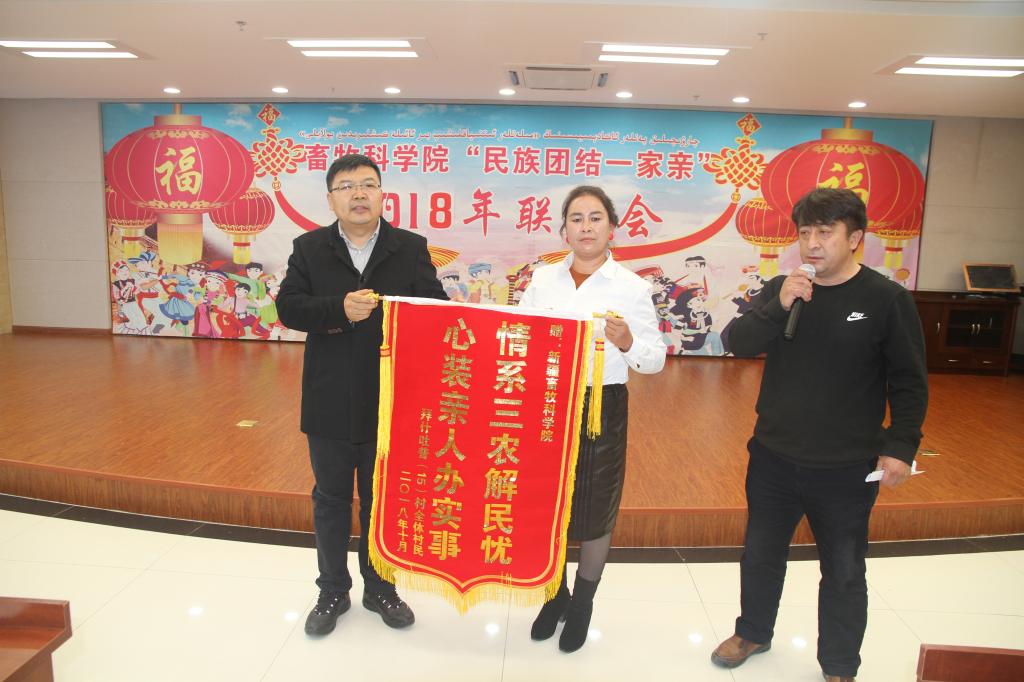 26日,是亲戚们要离开乌市返回家乡的日子,全院干部职工邀请亲戚们来到位于乌市经开区的综合科研楼参观学习,科研人员用通俗易懂的语言为亲戚们介绍了我院自主研发的先进设备和胚胎工程技术、转基因技术等现代生物技术在畜禽高效生产和产业化发展中的广阔应用前景,亲戚们纷纷表示,以前只知道羊肉能够拿来赚钱,没想到羊绒更有价值;以前只知道结亲干部是在畜牧行业工作,没有想到从事的是与世界接轨的事业,太了不起了。在民族团结联谊座谈会上,畜牧科学院党委委员、副院长韩雪松代表畜牧科学院党委和全院干部职工对亲戚们的到来表示热情欢迎,12村和15村的村民代表分别发言,并代表全村村民向畜牧科学院赠送了锦旗以示感谢感激之情。