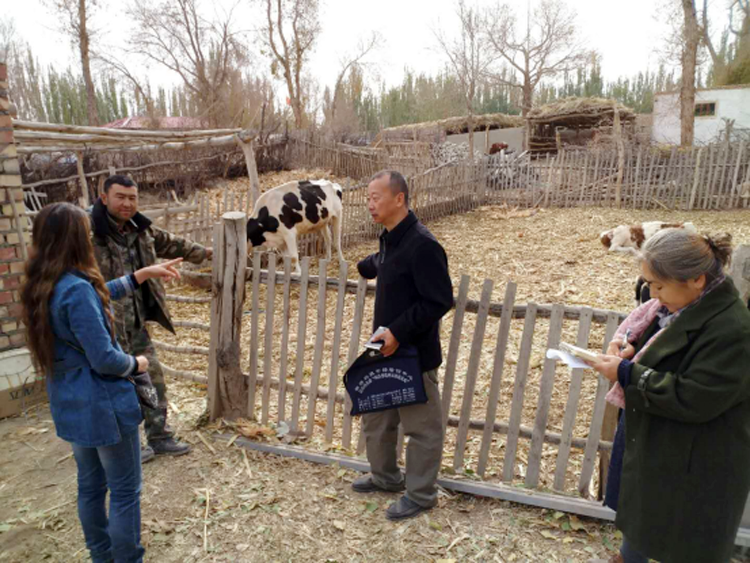 为了提升培训效果,服务团队分成两个小组在村委会及驻村工作队的安排下,分别到养殖大户家中进行了入户示范和技术指导,专家们紧密结合南疆农区生产实际,现场讲解了秋季牛、羊科学饲养、人畜共患病防治、良种繁育技术、家禽养殖、牛羊育肥、制作青贮饲料、棚圈建设及牛羊常见病与多发病诊疗等实用技术,并通俗解答了村民在畜禽日常饲养管理中遇到的技术问题,并针对性的给出建议。