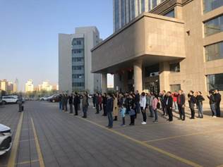 上午10点15分,在嘹亮的国歌声中,鲜艳的五星红旗冉冉升起,全体干部职工庄严地向国旗行注目礼,通过这样一种具有庄严感、仪式感强的教育实践活动,澎湃的自豪感油然而生,为我们伟大祖国的日益繁荣富强由衷地骄傲。升华了爱党、爱国的深厚感情,大家高唱国歌为祖国母亲献上祝福,共同祝愿我们伟大的祖国繁荣富强。升旗仪式结束后,由主持人带领大家重温了中国公民誓词。