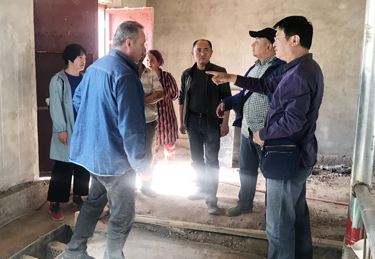 在兽医研究所党支部书记、伽师县米夏乡13村第一书记张迎忠带领下,兽医研究所的各位党员、专家们走村入户,在骆驼养殖户努尔买买提.阿布拉家,对其养殖的七峰骆驼逐一进行检视,发现其中一峰因蹄叶炎的原因,前蹄翻转,造成骆驼行走不便。兽医研究所临床研究室主任、农业推广研究员陈世军等专家对该病的治疗用药给予建议,对骆驼的棚圈及活动场所改建提出了可行性操作意见。在村民拜克热·巴拉提养羊合作社,了解其养殖和经营状况,该合作社容许村民入股分红,带领该村村民致富,合作社每年出栏1000多只羊,在村党支部带领下,对其规模进行扩大,让更多的村民可以共同致富脱贫。兽医研究所的各位专家,对羊圈的布局、粪便等污染物的清理、饲草料库房、养殖方式等提出了建议。
