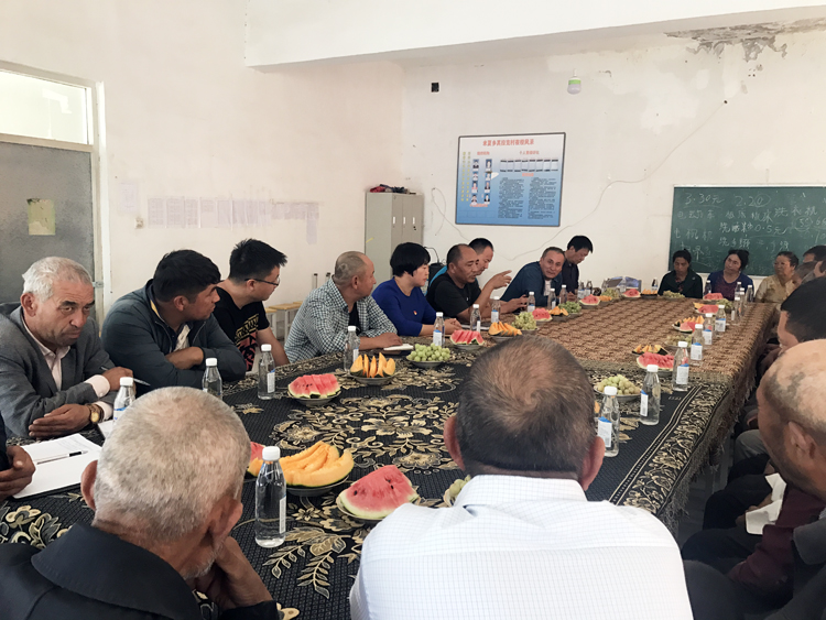 走访结束后,张迎忠书记召集13村的26名党员和兽医研究所的7名党员、专家进行了座谈。座谈会上,张迎忠书记为全体与会人员上了一堂生动的党课,张书记在讲党课时强调,无论是兽医研究所的党员,还是13村的党员,都要做好自己的工作,带领身边的人,提高道德品质,立足岗位,无私奉献。张书记还总结了13村近一年来取得的成绩,并对后期工作进行了规划。党课结束后,张迎忠书记邀请村里的党员有机会去乌鲁木齐,和兽医研究所党支部加强联建活动,加强基层党支部建设,切实发挥好党员的先锋模范带头作用和党支部的战斗堡垒作用,努力为新疆的社会稳定和长治久安做出贡献。