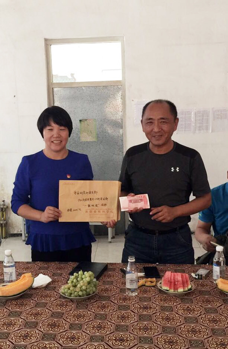 会上,兽医研究所党支部组织委员郭会玲,代表兽医研究所党支部向13村党支部送上联建共建活动经费2000元。(兽医研究所)