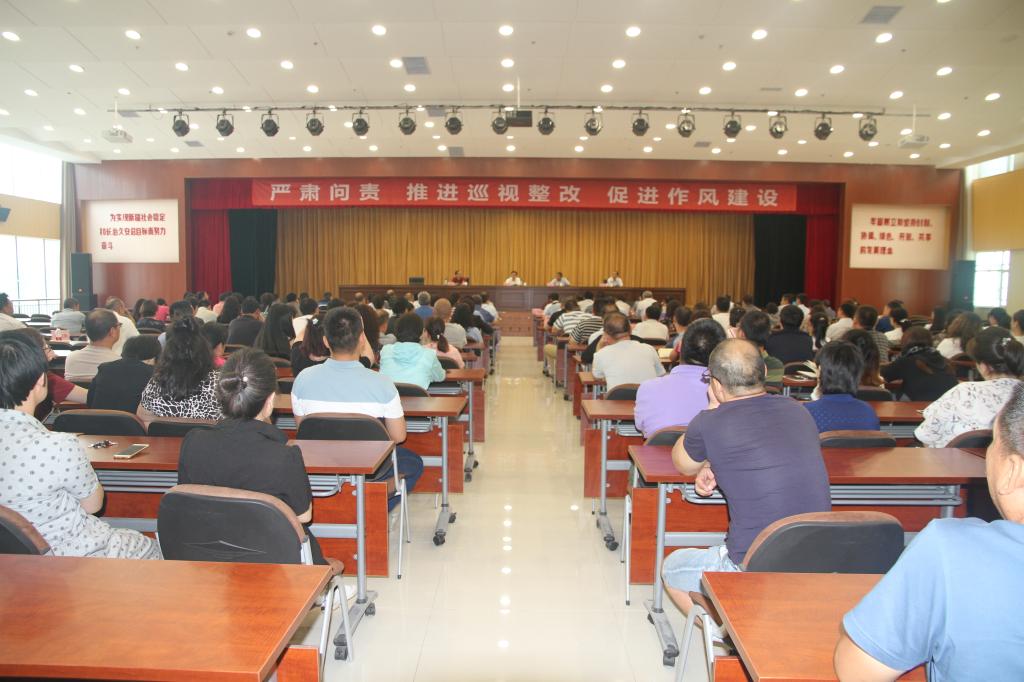 7月30日下午,自治区畜牧厅系统“严肃问责,推进巡视整改,促进作风建设”警示教育大会在畜牧科学院三楼学术报告厅召开。会议由厅党组书记、副厅长张伟同志主持并作重要讲话,厅党组成员、兽医局局长行庆华,厅党组成员、畜牧科学院党委书记、副院长冯东河,驻厅纪检监察组组长、厅党组成员吕栋以及厅系统各企事业单位领导干部、畜牧科学院的党员干部职工共计200余人参加了此次会议。