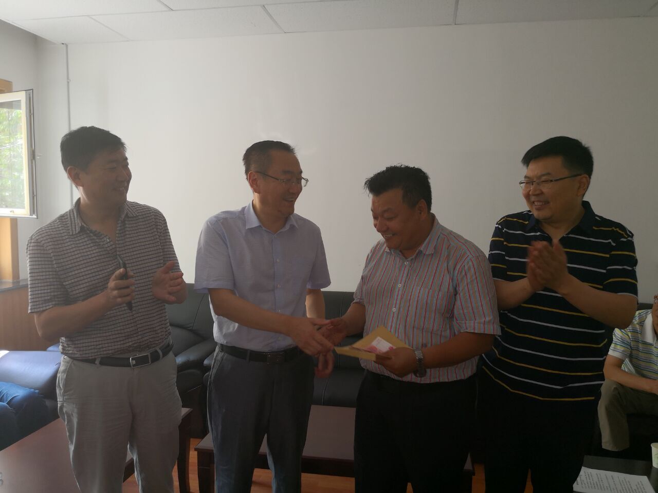 会后,畜牧厅党组成员,院党委书记、副院长冯东河,院党委委员、副院长韩雪松、曹宏斌为在“5.19”克拉玛依东街院区车库安全生产事件中表现突出,受到院党委通报表扬(牧科党发〔2018〕41号文)的畜牧业经济与信息研究所副所长穆合塔尔·买买提发放了奖金3000元,并勉励穆合塔尔·买买提同志继续发挥榜样作用,继续为全院的安全生产工作作出积极贡献。