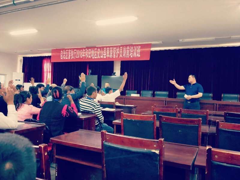 草管员师资培训由自治区草原监理站姬宏亮站长主讲,他从南疆四地州草原生态保护草原管护员管理暂行办法、草原保护有关法律法规,以及草原管护的日常工作、管护要求等方面,对我院及和田地区畜牧局参加培训的有关人员作了深入浅出的详细讲解。授课结束后,姬站长还与各位参加师资培训的学员们就草管员具体如何开展工作、履行草原管护职责可能遇到的问题等进行了互动交流和答疑解惑。