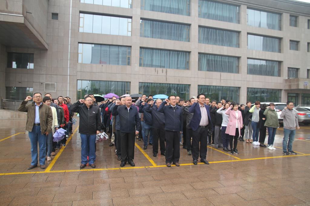 5月2日上班第一天,尽管天空中的小雨有逐渐增大的趋势,但畜牧科学院五月份第一次升国旗活动仍旧照常举行。上午10点半,畜牧厅党组成员,院党委书记、副院长冯东河,院党委委员、副院长巴哈提别克·阿哈泰及全院各族干部职工120余人在综合楼前集中等待活动的开始。升国旗仪式由院组织人事处的干部主持。在嘹亮的国歌声中,由我院职工担任护旗手和升旗手的队伍,正步走上升旗台,将一面鲜艳的五星红旗徐徐升起,在场的全院干部职工伴随着国歌,注视着国旗升起。升旗仪式结束后,由主持人带领大家重温了中国公民誓词。随后,院党委委员、副院长巴哈提别克·阿哈泰进行了发声亮剑发言,他以自己的亲身经历和感悟,态度鲜明、旗帜鲜明、立场坚定地发出了同“三股势力”“两面人”作斗争的宣言,弘扬了主旋律、传播了正能量,号召全体各族干部职工以实际行动坚定坚决维护以习近平同志为核心党中央的核心和领导权威,坚决贯彻落实党中央治疆方略和新疆工作总目标,坚决维护民族团结,坚决反对民族分裂,全力以赴维护好新疆的和谐稳定社会局面,努力建设我们的美好家园。