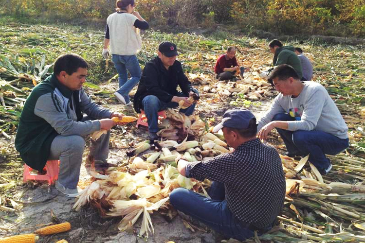 新疆畜科院党委书记冯东河及20位畜科院的干部来到村委会后边的热合曼·牙生家一起帮着拾棉花。右手受伤的热合曼·牙生的父亲正为缺人捡棉花发愁,看到一大片棉花被畜科院干部捡完,拉着冯东河书记的手留下激动的泪水,连声说“感谢共产党,感谢畜牧科学院的各位亲人”。下午冯东河书记又带着畜科院的各位一起来到另外一家困难户家中,帮助掰玉米。冯书记一边掰,一边和困难人员家属努拉汗聊天,了解家里的生产生活的情况以及她丈夫阿力木·克里木学习改造的情况,讲解了极端宗教思想的现实危害,法律法规的知识以及党的惠民政策,勉励她们放下思想包袱,帮助教育家人遵纪守法好好生活。努拉汗高兴地说“一直觉得丈夫犯了错误有点抬不起头,心里压力大。冯书记的话,帮我化解了心里的疙瘩。我也对生活更有信心了”。