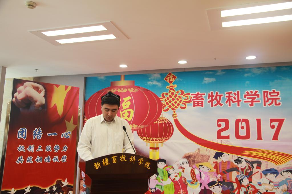 2017年5月12日,我院在综合办公楼二楼会议室举办“新疆畜牧科学院民族团结一家亲 2017年大讲堂”活动,我院青年干部职工代表旗帜鲜明地向“三股势力”宣战,主动揭批“三股势力”、“两面人”对新疆的危害,结合自身成长、工作实际发声亮剑。院领导及各族干部职工聆听了此次宣讲活动。