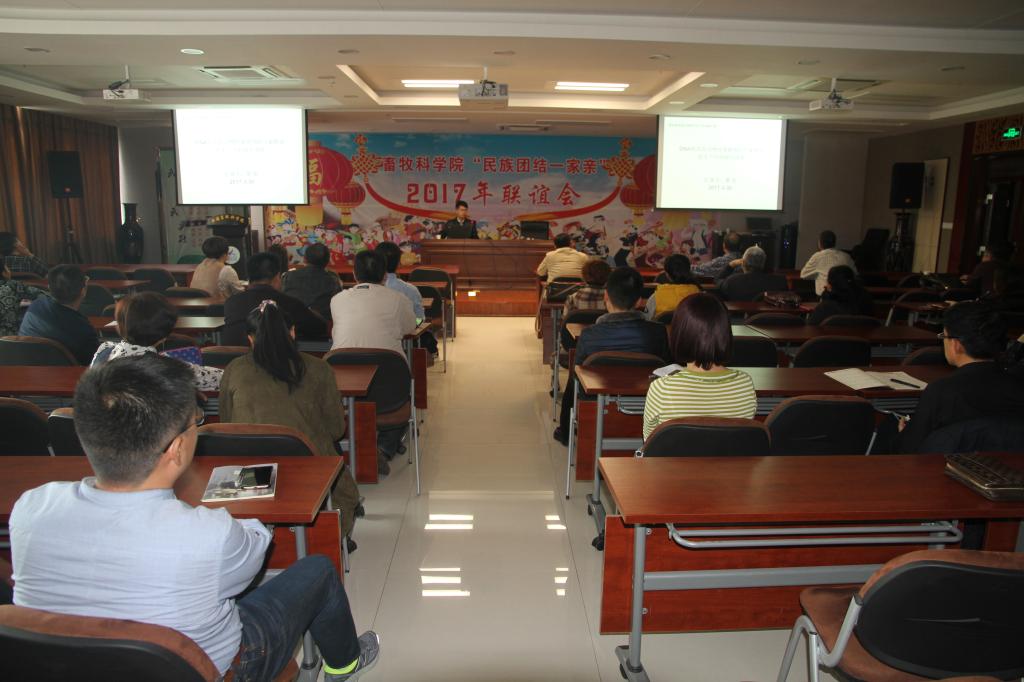 2017年3月30日下午,新疆畜牧科学院在院二楼会议室举办2017年度公派留学学习及成效专场报告会,这是2017年度全院系列学术报告会的首场报告,由国家留学基金委资助,2016年按期回国的玉山江、夏俊、吴伟伟三位同志作了报告。副院长李柱主持会议,院党委书记冯东河、院长王力俭以及各所科研人员参加了此次报告会。