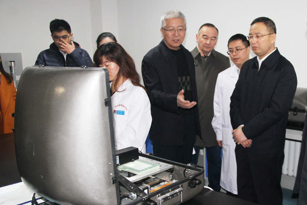 2017年3月15日,自治区人民政府副主席张春林等领导一行专程来到我院位于经济技术开发区(头屯河区)的科研综合楼视察指导工作。王力俭院长和在家的院领导及相关人员陪同张春林副主席一行参观了我院科研综合楼和实验室。