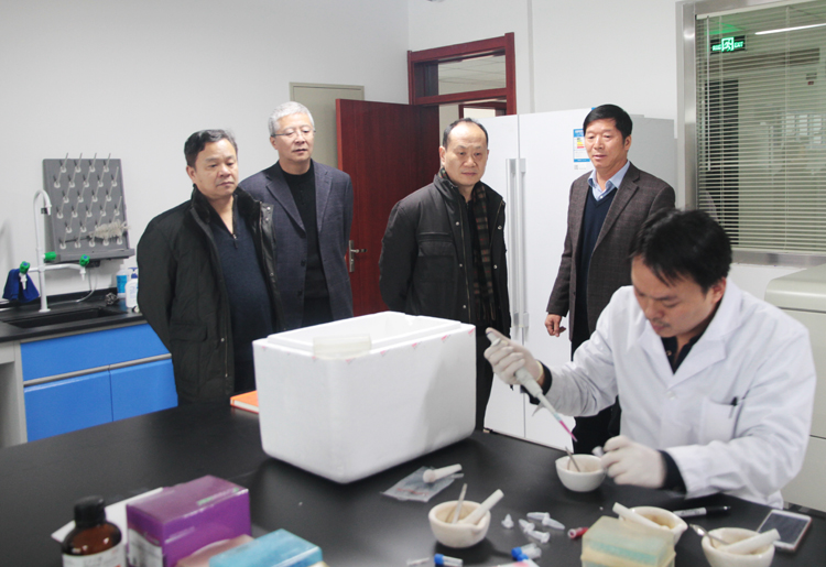 农业部兽医局局长冯忠武一行来我院座谈交流,并在院长王力俭的带领下参观了实验室。