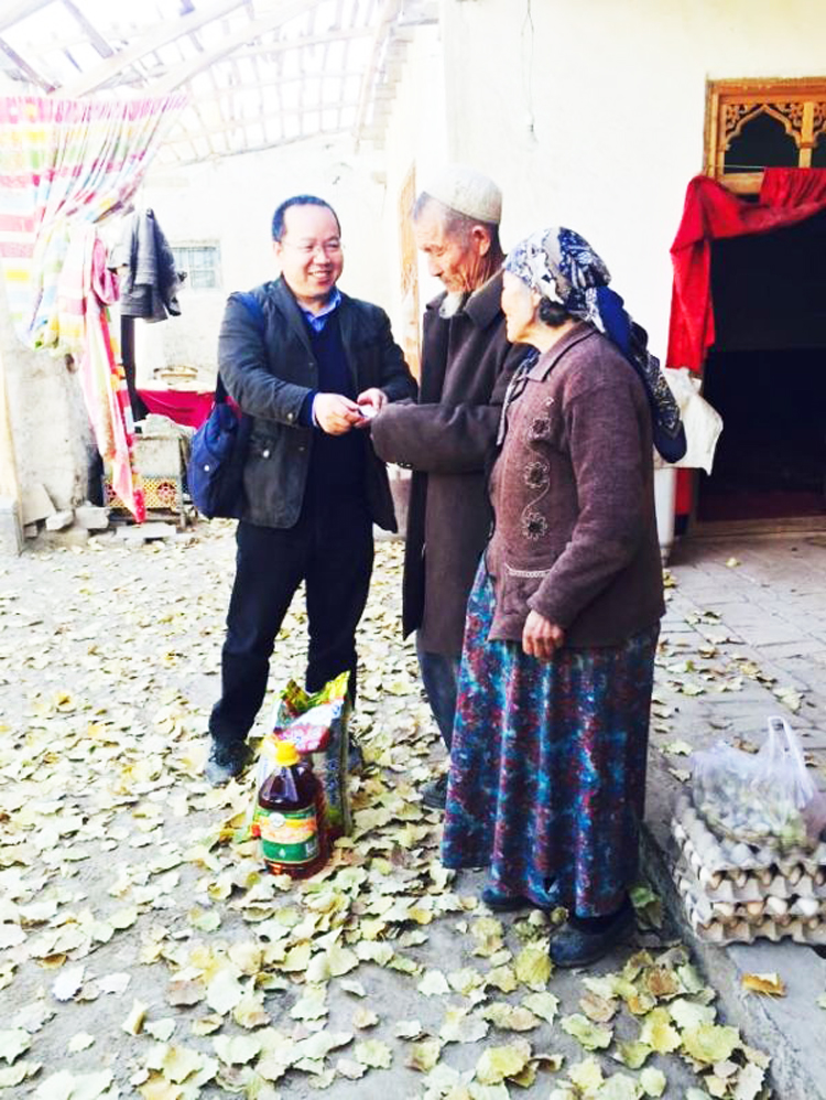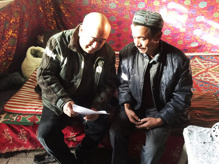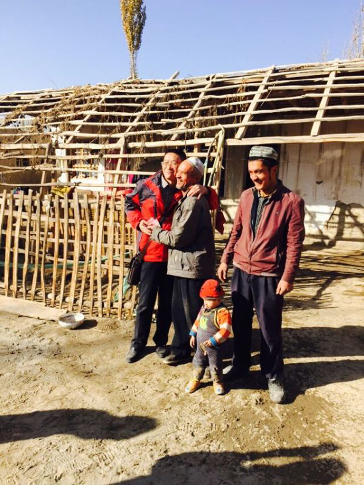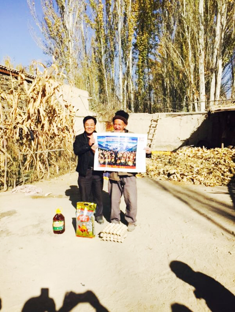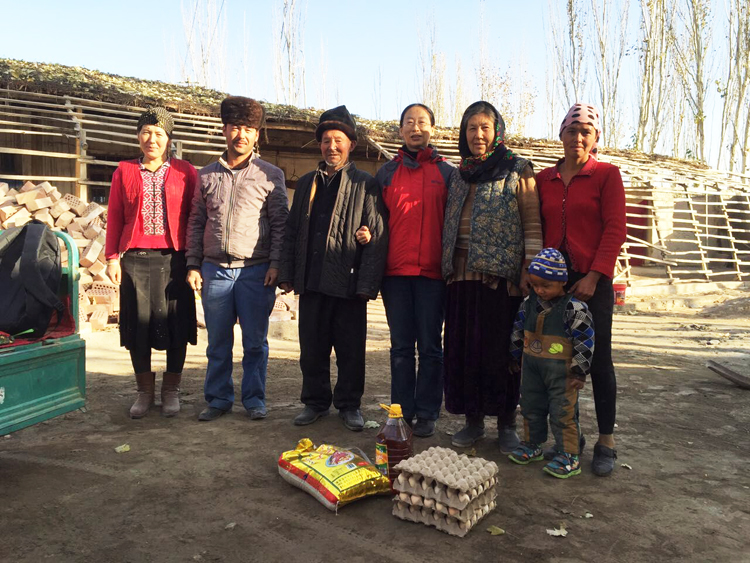 工作队一行11日早晨8时到达院驻村工作组驻地即开展结对认亲活动,工作队成员牢记自己的工作职责,在认真听取我院驻村工作组关于结对认亲活动安排情况介绍,实地参观学习由驻村工作组帮助12村建设的现代化蛋鸡场之后,在驻村工作组成员和当地村干部的带领下,工作队成员分成3个小组前往结对认亲家庭,送去了大米、清油、鸡蛋等慰问品,照全家福,查看院落、房间和圈舍,了解家庭组成情况、生产生活情况、种植和养殖情况、生产工具配置和技能应用情况、主要经济收入来源等基本情况,认真填写巴楚县开展“民族团结一家亲”活动结对登记表。同时,不失时机的宣传党的民主政策和开展“民族团结一家亲”活动的意义以及党中央、自治区党委对新疆人民的关心。在结对认亲活动期间,工作队大部分同志为结对认亲对象送去200元,表达“民族团结一家亲”的一份心意。畜牧研究所的同志还为结对认亲家里送去由《新疆经济报》制作带有2017年日历的“民族团结一家亲”宣传画。
