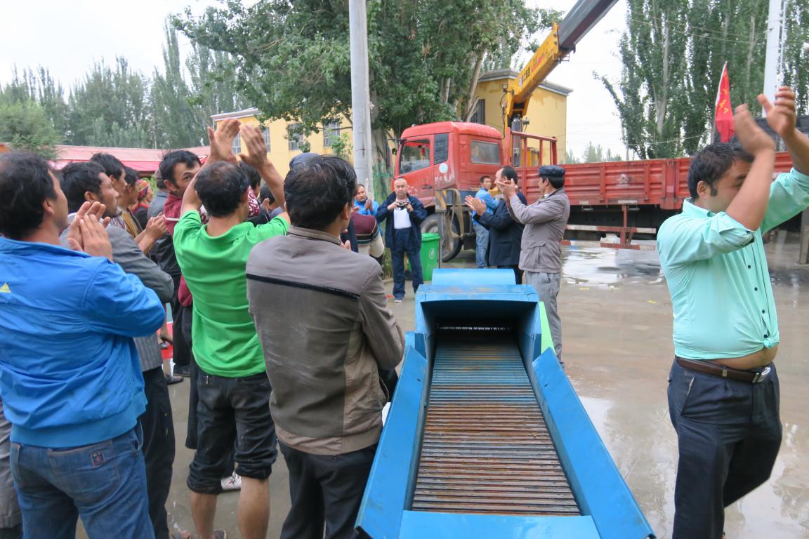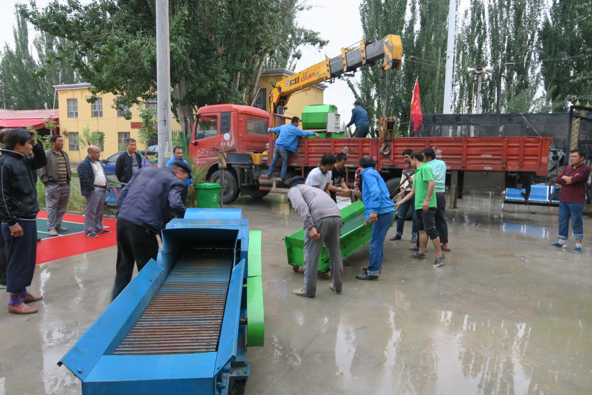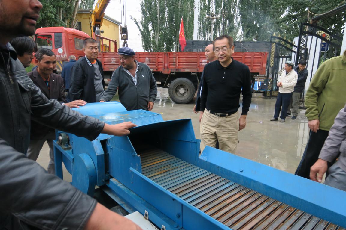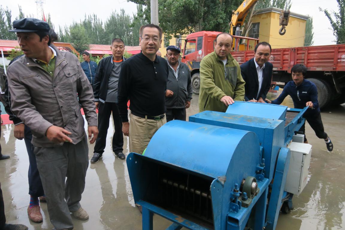 2016年8月26日,新疆畜牧科学院2016年住巴楚县色力布亚镇阿勒台开斯克(12)村工作组免费赠送了铡草机和打包机。在赠送仪式上,村支部书记艾尼瓦尔·买买提说,感谢工作组为我们12村畜牧养殖业的发展,大力支持和帮助,在住村以来,为我们12村新建了蛋鸡养殖示范场,召开了多次有关畜牧养殖示范现场会和培训会,我代表全村村民对工作组的大力支持和帮助表示衷心的感谢。自治区畜牧厅党组成员、新疆畜牧科学院党委书记、住12村“访惠聚”工作组长冯东河讲,为加快12村畜牧养殖业的发展,提升畜牧养殖业在农民收入的比重,加快脱贫致富步伐,工作组通过各种渠道为12村免费赠送畜牧养殖加工生产工具铡草机和打包机,提高粗饲料的转化率,增加畜牧养殖业的经济效益。希望村两委要使用好发挥好它的积极作用。