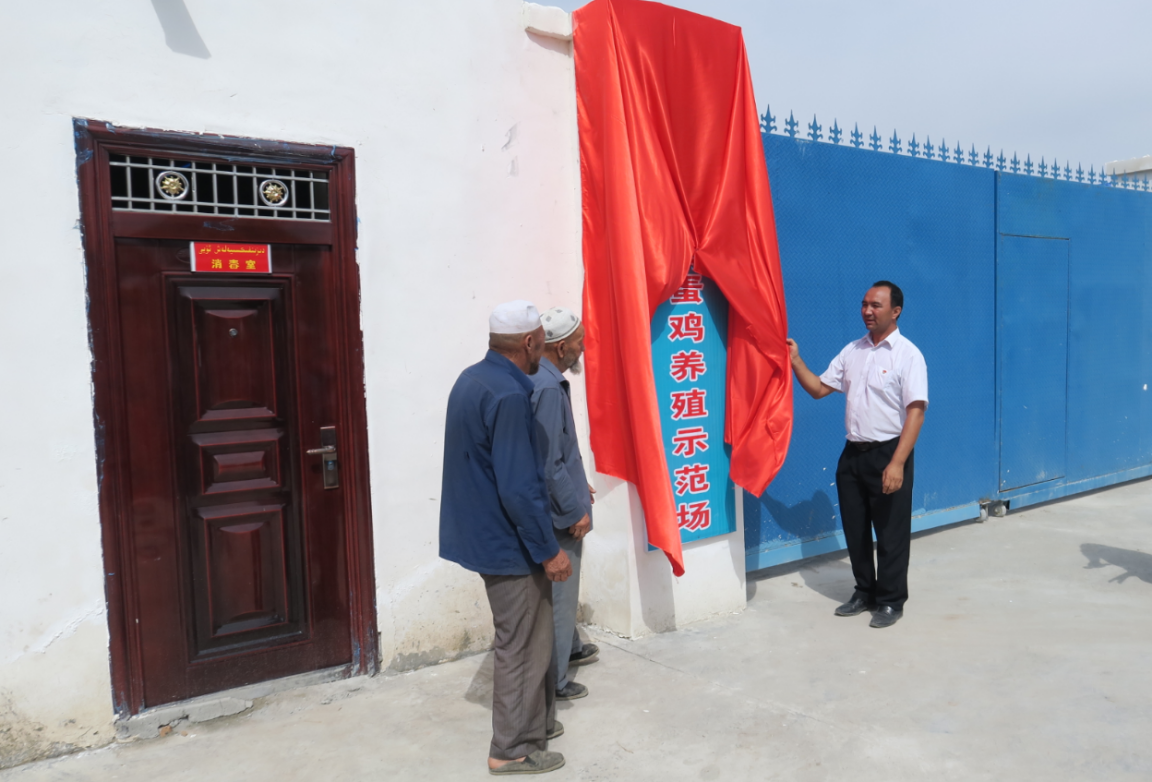 2016年8月22日上午,新疆畜牧科学院“访惠聚”住村工作组和巴楚县色力布亚镇阿勒台开斯克(12)村两委,举行惠民蛋鸡规模化养殖示范场竣工揭牌仪式。