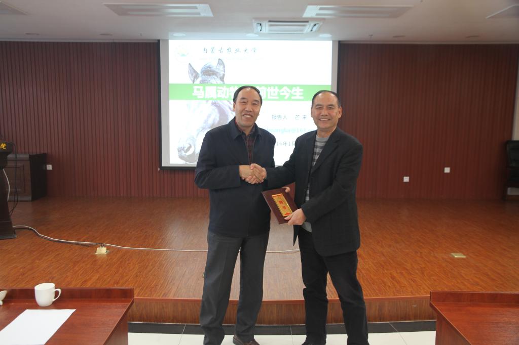 芒来教授从当前国家对马产业发展的关注及相关政策、世界马产业效益、马属动物全基因组测序进展、马产业文化的发展与挑战、中国驴业的现状及发展趋势等10个方面进行了报告。芒来教授强调,内蒙古和新疆作为马属动物养殖大区,也是马属动物发展最具潜力的地区,马属动物品种资源丰富,存栏基数大,科研力量雄厚,他希望内蒙古和新疆两地能借助双方的资源优势和科研优势,加强协同创新力度,共同推动全国马产业繁荣发展。芒来教授独到的见解,生动的语言,渊博的知识,使在场的科研人员深受启发。