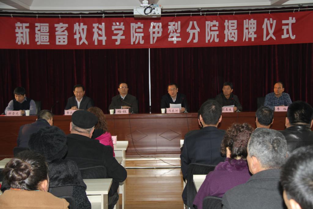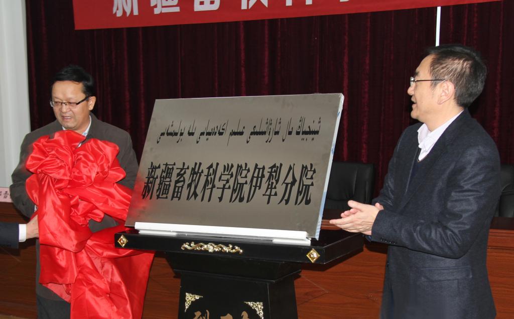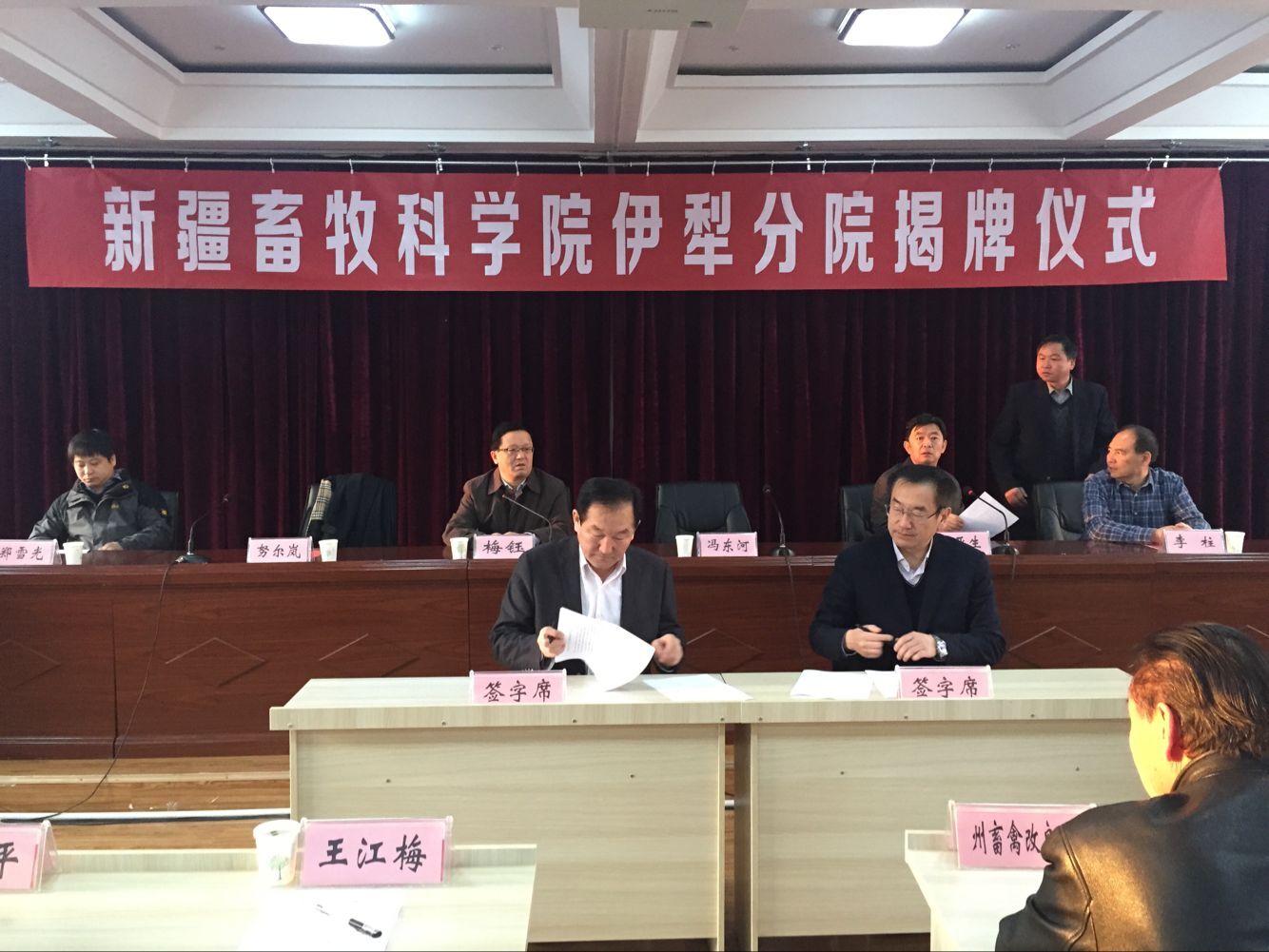 2015年12月18日上午,新疆畜牧科学院与伊犁州畜牧兽医局在伊犁州畜牧科学研究所签署科技合作协议,共同成立新疆畜牧科学院伊犁分院。新疆畜牧厅党组成员、新疆畜牧科学院党委书记冯东河,伊犁州人民政府副州长梅钰,新疆畜牧科学院党委委员、副院长李柱、郑雪光,伊犁州畜牧兽医局党组书记胡亚生、局长努尔岚,以及州畜牧兽医局、各站所主要负责人出席了签字活动。