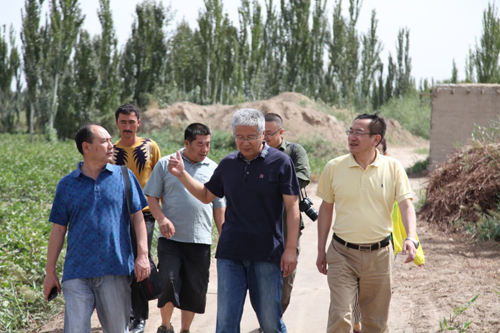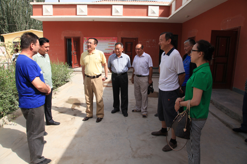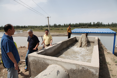 在色力布亚镇,调研组一行在喀什地区畜牧局和巴楚县畜牧局领导陪同下,走访慰问了畜牧厅哈尔肯·哈布德克里木厅长和木日扎别克·木哈什副厅长所在的工作组,送去了慰问品,详细了解了工作生活情况。随后,调研组一行到达16村院工作组驻地,仔细查看了工作组住房、食堂、卫生所及村两委办公室、图书室等地,详细了解了工作组成员的工作、学习、生活和身体、家庭状况,并实地考察了由我院协助建设的惠民项目村扬水站工程等。