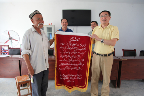调研组一行与驻村工作组进行了座谈,详细了解驻村工作组的工作及生活情况和当地畜牧业发展情况,认真听取了工作组周转房建设的基本情况,为畜科院下一步有针对性开展工作进行对接。在与党员和村民代表座谈时,村民代表纷纷发言,对我院住村工作组所做的工作予以充分的肯定,并 对当前存在的问题和今后的工作提出意见和建议,党员代表向院领导赠送了锦旗。为此,冯书记表示,我院将严格按照自治区党委“访惠聚”工作要求,充分发挥我院优势,不断改进工作作风,发扬勇于担当的精神,积极筹划,调动各方面的力量,为16村畜牧业发展及农牧民脱贫致富做出应有的贡献。