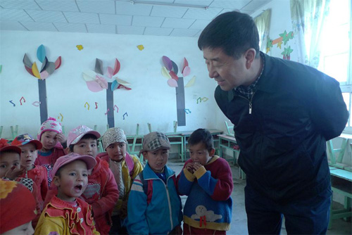 畜牧厅驻巴楚县恰尔巴格乡7村工作组驻地旁边是村幼儿园,有近90个孩子在这里接受学前教育。2014年4月16日上午,畜牧厅驻7村工作组队员们来到幼儿园,了解双语教学情况,并带去了牛奶、西瓜、饮料等孩子们喜欢的食品。幼儿园开设有双语课,但孩子们的汉语读音很不标准。幼儿园老师反映,幼儿园近90个孩子,分成两个班,有两个老师负责教学。老师没有专门的办公室,全天都在教室与孩子们在一起。老师基本可以用汉语与我们交流,但她发音也还不准。