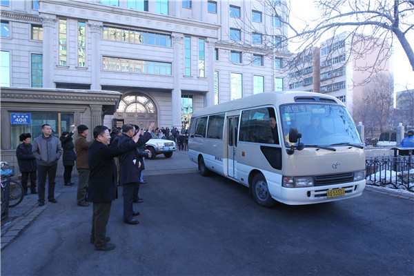 以张致恒书记为首的畜牧厅领导为工作组送行。