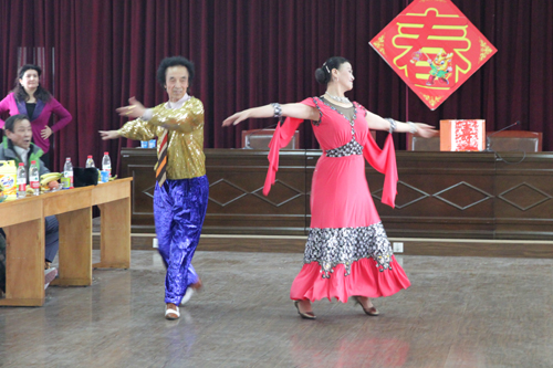 院老干赵泽生与夫人为大家表演新疆舞蹈