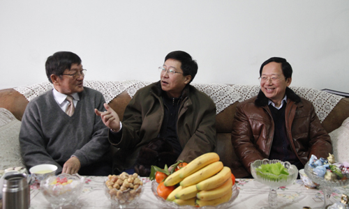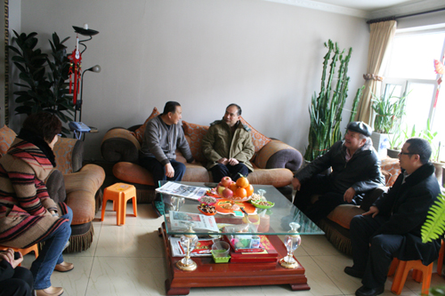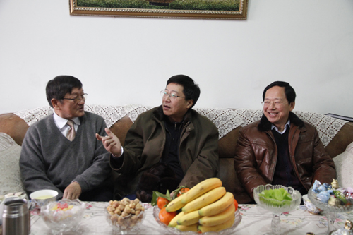 2013年1月15日上午,新疆畜牧科学院王力俭院长、李柱副院长、巴合特别克副院长及院属各单位领导,亲切看望并慰问我院离退休老干部,并送上了节前的问候与慰问品。