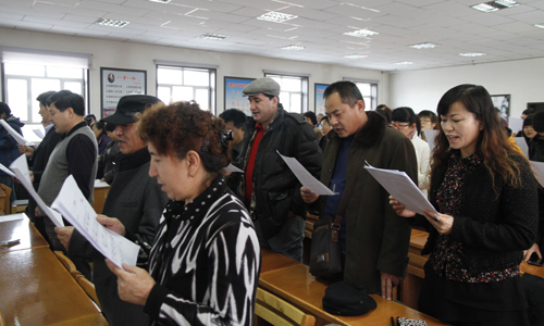 兽医研究所的祖力比亚给大家讲述了她们一家资助喀什地区叶城县柯可亚乡三村二组失学孩子买热木姑丽的感人事迹