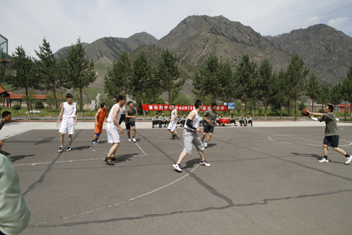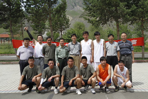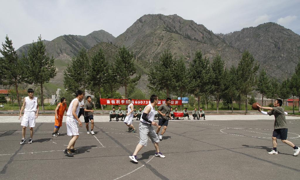 在与部队官兵进行了友好的座谈之后,畜科院男子篮球队与部队官兵进行了一场友谊比赛。比赛场上双方互相加油鼓励,欢声笑语,其乐融融,军民共叙鱼水深情。