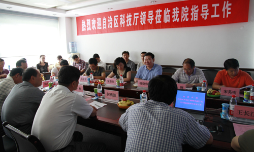 2012年6月15日下午,新疆维吾尔自治区科技厅杨晓伟厅长一行来新疆畜牧科学院指导工作。我院党委书记何海源、院长王力俭、副院长李柱、王长江及院属各单位领导参加了座谈会。
