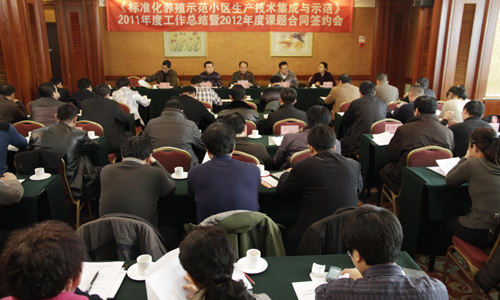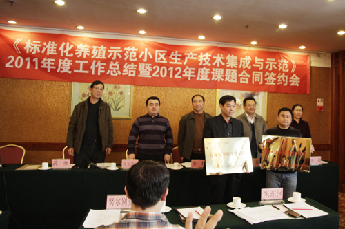 2012年2月23日,由新疆畜牧科学院承担的自治区科技成果转化专项资金项目《标准化养殖示范小区生产技术集成与示范》2011年度工作总结暨2012年度课题合同签约会在乌鲁木齐市翼龙大酒店顺利召开。