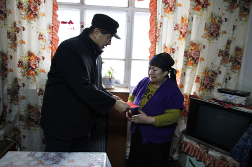 2011年12月28日,新疆畜牧科学院党委书记何海源与副院长王军带领院属各单位领导慰问清泉社区。