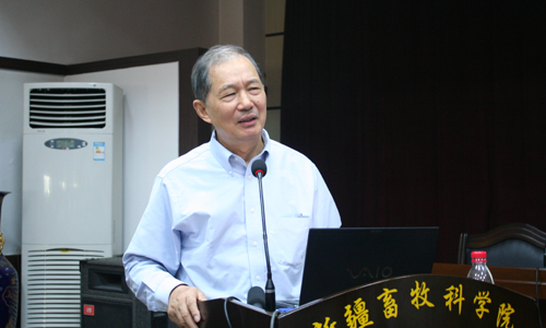 2011年8月9日上午,中国科学院院士朱作言在畜牧科学院学术厅作关于《杂交和转基因育种分析》的学术报告。