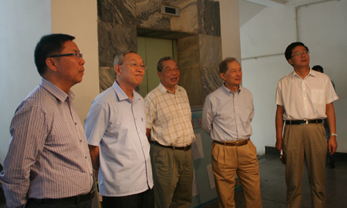 朱作言院士在院长王力俭的陪同下参观羊毛羊绒检验中心