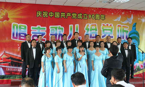 生活服务中心代表队演唱《山丹丹开花红艳艳》、《咱们工人有力量》